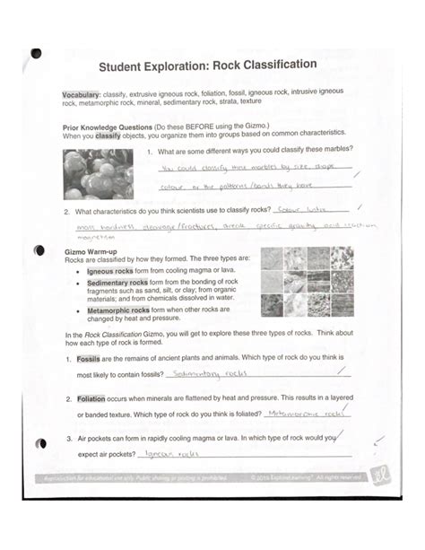 Download online STUDENT EXPLORATION ROCK CLASSIFICATION ANSWERS PDF